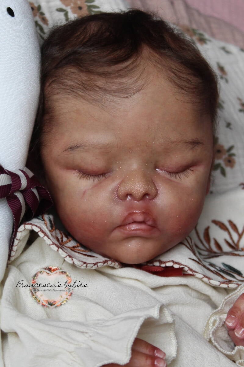 Delilah's details are painted to make the baby as real as possible. She has capillaries and veins that you can see under the skin. She has painted milk dots and lanugo , the eyebrows are painted and rooted. I hope you love her as I do..